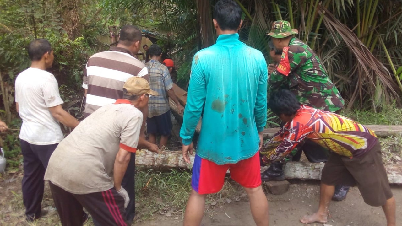 Babinsa Sertu Faisal dengan penuh semangat mengajak dan menghimbau masyarakat agar bersama-sama memperbaiki jembatan yang hampir tidak layak untuk digunakan tersebut agar masyarakat kedepan bisa menggunakannya dengan aman dan nyaman.