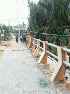 Dengan selesainya pengecoran lantai jembatan beton sasaran fisik dalam program TMMD ke 106 Akan melanjutkan pemasangan mal balok tiang pagar jebatan di lanjutkan dengan pemasangan besi 2 Inci yang akan di pasang di Pagar jembatan.