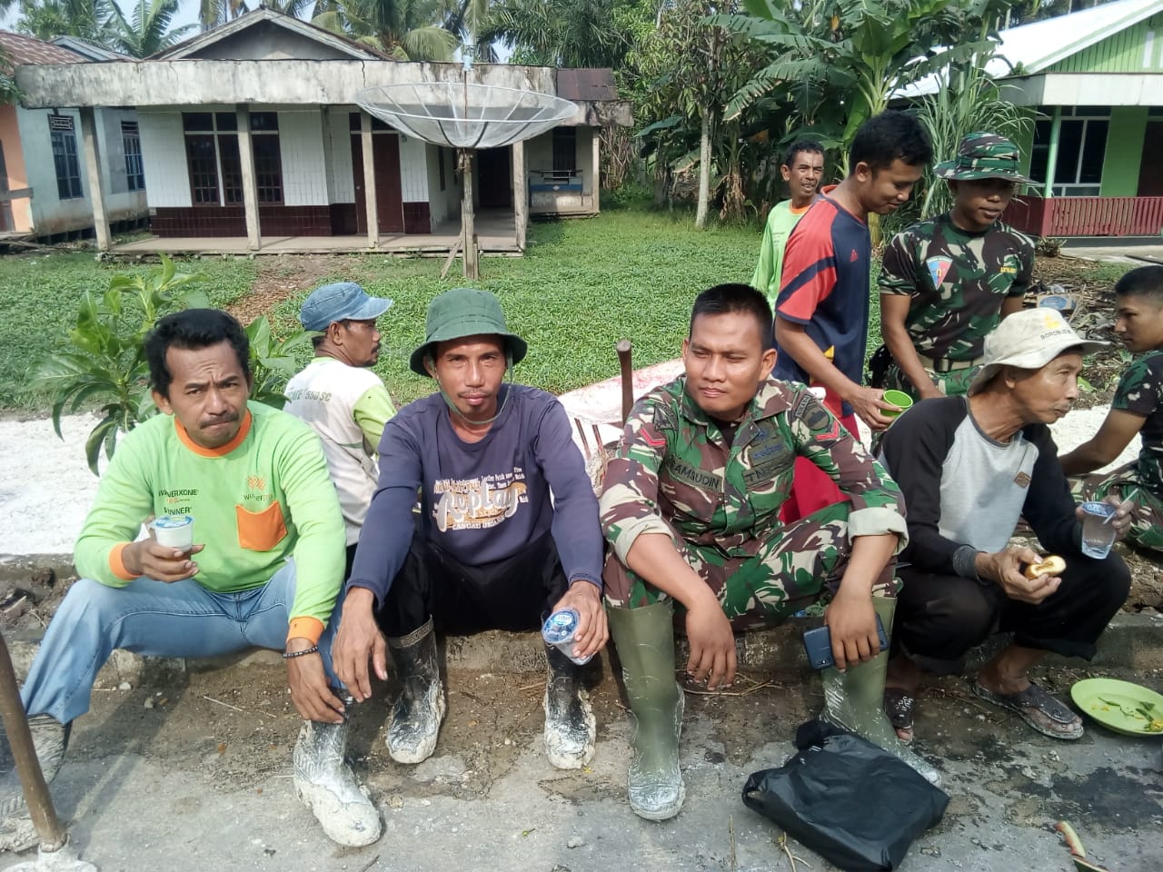 seribuparitnews.com RETEH - Program TNI Manunggal Membangun Desa (TMMD) ke 106 Kodim 0314/Inhil, Personil personel TNI dan warga setempat disela-sela waktu luang dalam pengerjaan penimbunan jalan dengan sirtu, tak luput mereka saling bercengkrama dan tukar pengalaman, ini sangat terlihat kedekatannya antara TNI bersama Rakyat di Desa Sanglar, Kecamatan Reteh, Kabupaten Indragiri Hilir (Inhil), Sabtu (20/10/2019).