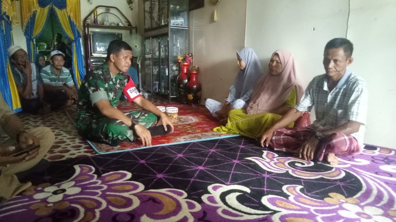 Dandim 0314/Inhil, Imir Faishal yang kehadirannya didampingi oleh Danramil 07/Reteh, Kapten Arh Syahrul Effendi untuk melakukan ta'ziahb dikediaman Winanda juga untuk memonitor pekerjaan sargas TMMD ke 106 Kodim 0314/Inhil.