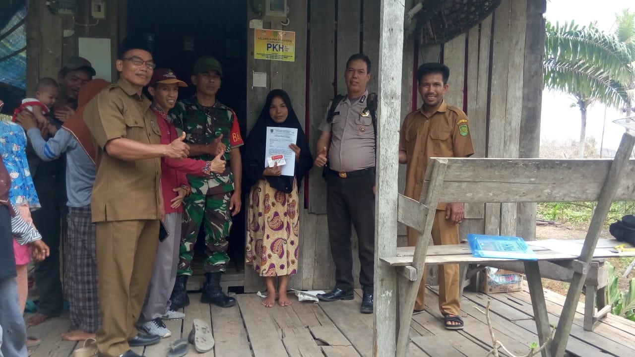 seribuparitnews.com TEMBILAHANHULU - SIALANG PANJANG : Pendamping Bansos PKH Bustamin didampingi Babinkamtibmas Selaku Satgas Bansos, Babinsa dan Perangkat Desa Sialang Panjang Kecamatan Tembilahan Hulu Memasang Labelisasi/Stiker Kepesertaan Bansos PKH Kepada Penerima Bansos PKH di Desa Sialang Panjang.