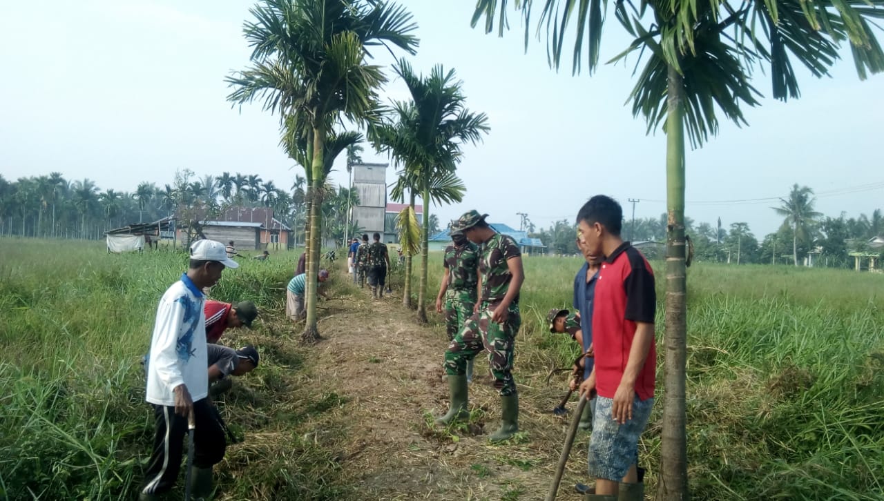 seribuparitnews.com RETEH - Satgas TNI Manunggal Membangun Desa (TMMD) ke 106 Kodim 0314/Inhil dan masyarakat Desa Sanglar melaksanakan gotong royong bersama di RT 02 RW 05, Senin (21/10/2019).