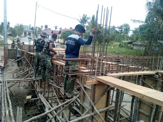seribuparitnews.com RETEH - Pengerjaan sasaran Jembatan Beton oleh Satgas TMMD ke 106 Kodim 0314/Inhil di Desa Seberang Sanglar sudah dalam Proses Pemasang Mal balok Melintang dan Mal balok penahan Lantai balok atas, Rabu (16/10/2019).