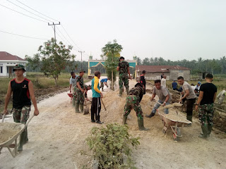 Dalam kesempatan ini Dan SSK Lettu Arh Yopi menyampaikan Kegiatan penimbunan jalan Dengan Sirtu yang di jalan merdeka menuju ke Desa Sanglar pun akan kita kejar pencapayannya target.