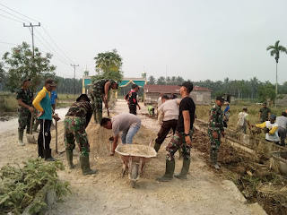 seribuparitnews.comRETEH - Satgas Tentara Manunggal Membangun Desa (TMMD) Ke-106 bersama masyarakat pun saling bekerja sama menyerakkan sirtu yang ditumpuk oleh mobil dengan cara Bergotong royong, Senin (14/10/2019).