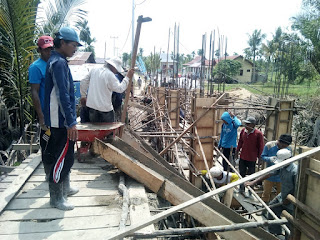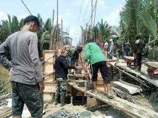Danramil 07/Reteh Kapten Syahrul Effendi Selaku kordinator jembatan Danton SSK dan Kepala Desa Seberang Sanglar serta Ketua pemuda Desa sanglar terjun langsung melaksanakan pengecoran balok air jembatan beton ini.