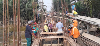 seribuparitnews.com RETEH - Jembatan beton yang ada di Desa Seberang sanglar satgas bersama masyarakat yang dominan suku Bugis terus terus kejar pencapaian persentasi agar cepat selesai Rabu 09/10/2019