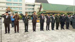 seribuparitnews.com TEMBILAHAN -- Komandan Kodim (Dandim) 0314/Inhil Letkol Inf Imir Faishal mengikuti kegiatan Upacara Hari Kesaktian Pancasila 1 Oktober 2019 di Halaman Kantor Bupati Inhil, Selasa, (01/10/2019).