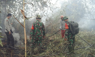 Api cukup sulit untuk dipadamkan karena kondisi gambut yang cukup tebal tukas Sertu Masri
