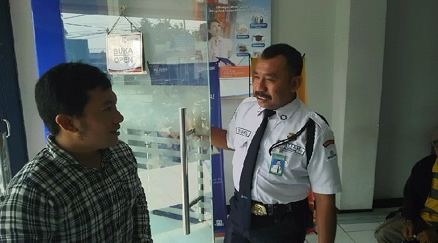 Dengan sabar beliau melayani Nasabah dengan ramah dan cepat, menjaga keamanan nasabah hingga nasabah merasa nyaman. Sehingga pantas beliau menyandang satpam teladan diantara satpam satpam yang lainnya