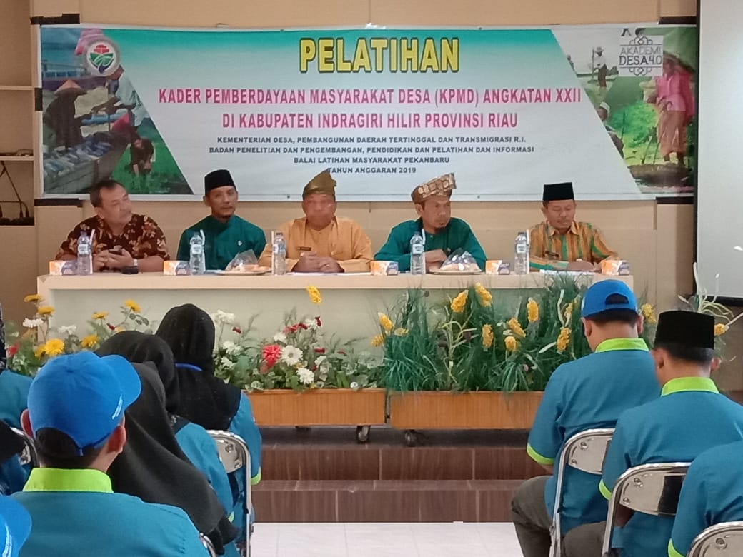 Seribuparitnews.com ||• Government News•||, TEMBILAHAN: Kementerian Desa Daerah Tertinggal dan Transmigrasi Republik Indonesia Balai Latihan Masyarakat melalui Badan Pemberdayaan Masyarakat Desa Kab.Inhil melaksanakan Pelatihan Pelatihan Kader Pemberdayaan Masyarakat Desa Angkatan XXII di Aula BPMD Inhil Jalan Pendidikan Tembilahan Jumat (26/07/2019).