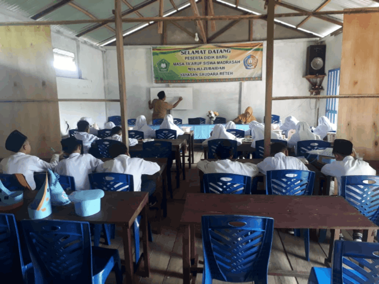 Sebanyak 38 siswa baru yang diterima di Madrasah Tsanawiyah (MTs) Hj Zubaidah, yang berada di Jalan SMP Gang Belibis, Parit 2 Pulau Kijang, Reteh, Inhil ,Selasa (16/7/2019) mulai hari Senin Sampai Kamis mengikuti kegiatan Masa Orientasi Siswa (MOS)