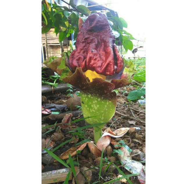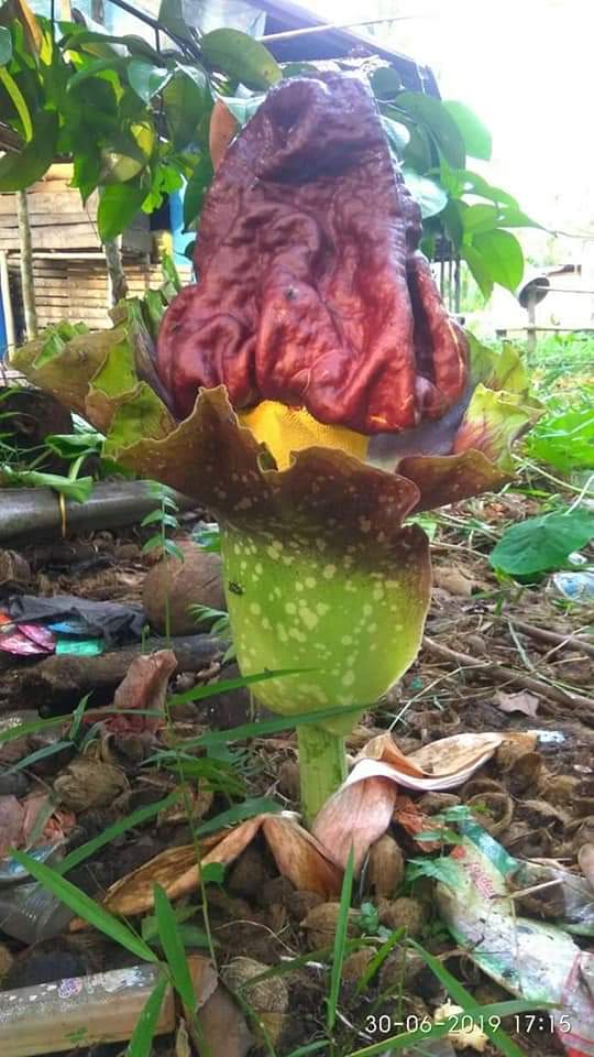 Tanaman langka ini yang sejenis Bunga Bangkai/Refflesia tumbuh di parit 5 Sampang Desa Sialang Panjang, Tumbuh di belakang rumah Ibu Raudha yang ada di parit 5 Sampang Desa Sialang Panjang. Tanaman ini diketahui Ibu Raudhah pada hari kamis, 27 Juni 2019 dan beberpa hari yang lalu Rahmah Anak Ibu Raudhah memposting tumbuhan tersebut di media sosial.
