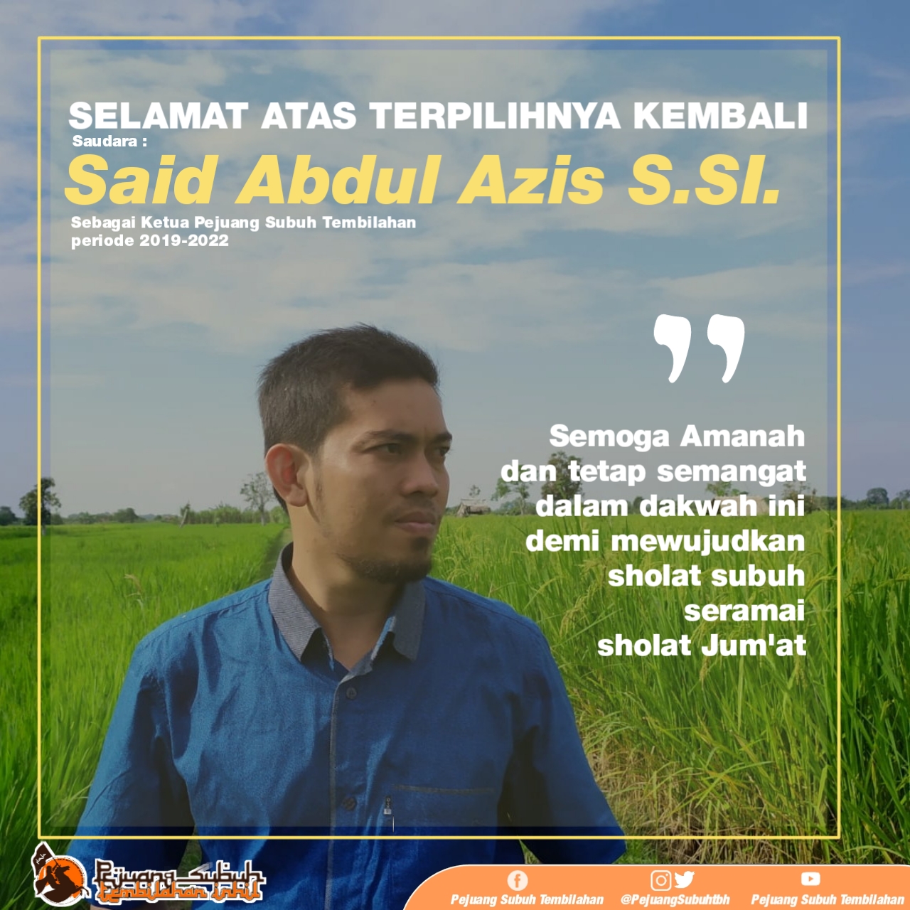 Said Abdul Azis S.SI Kembali Pimpin Pejuang Subuh Tembilahan INHIL.. Periode 2019-2022..