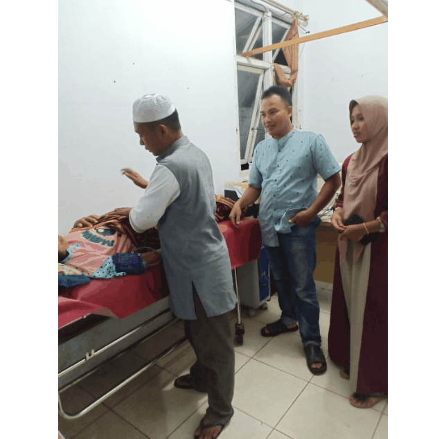 | Tampak Kepala Desa Pekankamis memeriksakan Warganya yang terkena penyakit Liver Menahun |