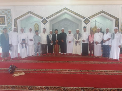 Seusai Sholat Ied Camat Tembilahan Hulu bersalaman dengan Pengurus Masjid dan warga masyarakat sekitar Masjid Al-Ikhlas YAMP.(ds)