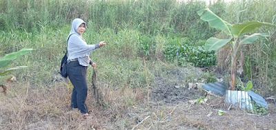 | Yuliana Daud (Ketua Komunitas Emak Sehat) tampak menunjukkan tanah hibah untuk pak sabda |