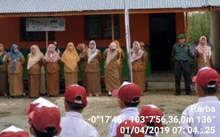 Tembilahan : Senin (01/04/2019) Sertu Surung Simbolon Babinsa Pekan Arba Koramil 01/Tembilahan menghadiri upacara bendera di SDN 001 Pekan Arba di Kelurahan Pekanarba.