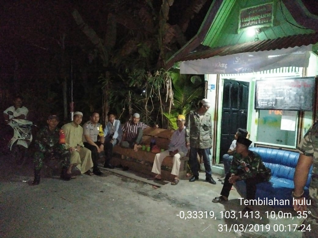 TEMBILAHANHULU : Sabtu (30/03/2019) Pukul 23.00 Wib Babinsa Tembilahan Hulu Koramil 01/Tembilahan Serda Jondri bersama Lurah Tembilahan Hulu Saini Hamzah, S.Sos dan Bhabinkabtibmas Tembilahan Hulu Bripka Ahmad Yani melaksanakan Kegiatan Jam Malam dan Patroli Siskamling di Sekitar Rt 01,02,03 Tembilahan Hulu.