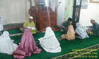 Tembilahan : Selasa malam (26/03/2019) Babinsa Kelurahan seberang Tembilahan Koramil 01/Tembilahan Serma Jaharzam melaksanakan magrib mengaji di masjid Miftahussadah. RT03 / RW 01 Kelurahan Seberang tembilahan,