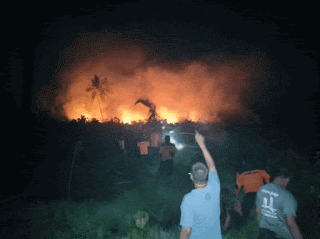TEMBILAHANHILIR : Malam Kamis (20/03/2019) terjadi kebakaran di lahan perkebunan pemilik an H. Zaini awang dilokasi parit 21 Kelurahan Tembilahan Hilir Kecamatan Tembilahan. Kejadian lebih kurang pukul 21. 30 dan api bisa dipadamkan pukul 00.45.