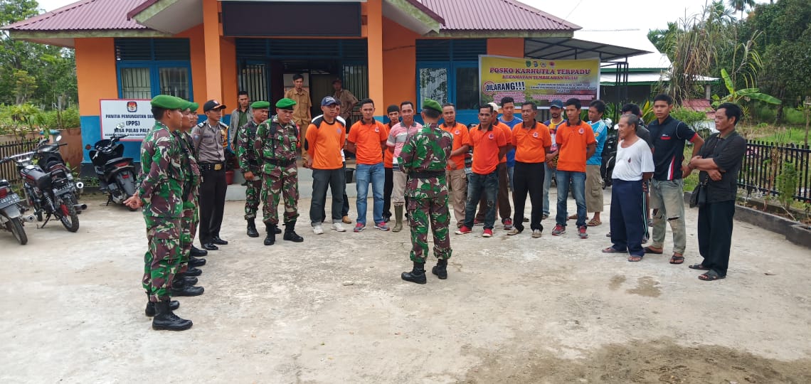 TEMBILAHANHULU : Selasa (12/03/2019) anggota Koramil 01/Tembilahan melaksanakan latihan penanggulangan Kebakaran Hutan dan Lahan (KARHUTLA) bersama Masyarakat Peduli Api (MPA) di Desa Pulau Palas. Kegiatan tersebut dihadiri  Danramil 01/Tembilaha Kapten Arh Zaenuri, Kepala Desa Pulau Palas Arifin, S.Ag, para Bhabinsa dan Bhabinkamtibmas Pulau palas, para Kepala Dusun, Perangkat Desa dan anggota (masyarakat peduli api).