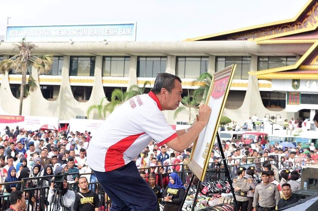 PEKANBARU – Masyarakat Kota Pekanbaru menyambut hangat iven terbesar di Indonesia ‘Deklarasi Anti Narkoba’. Kegiatan yang dikhususkan bagi generasi millenial ini, bertujuan untuk memerangi peredaran narkoba yang dapat merusak prestasi anak bangsa.