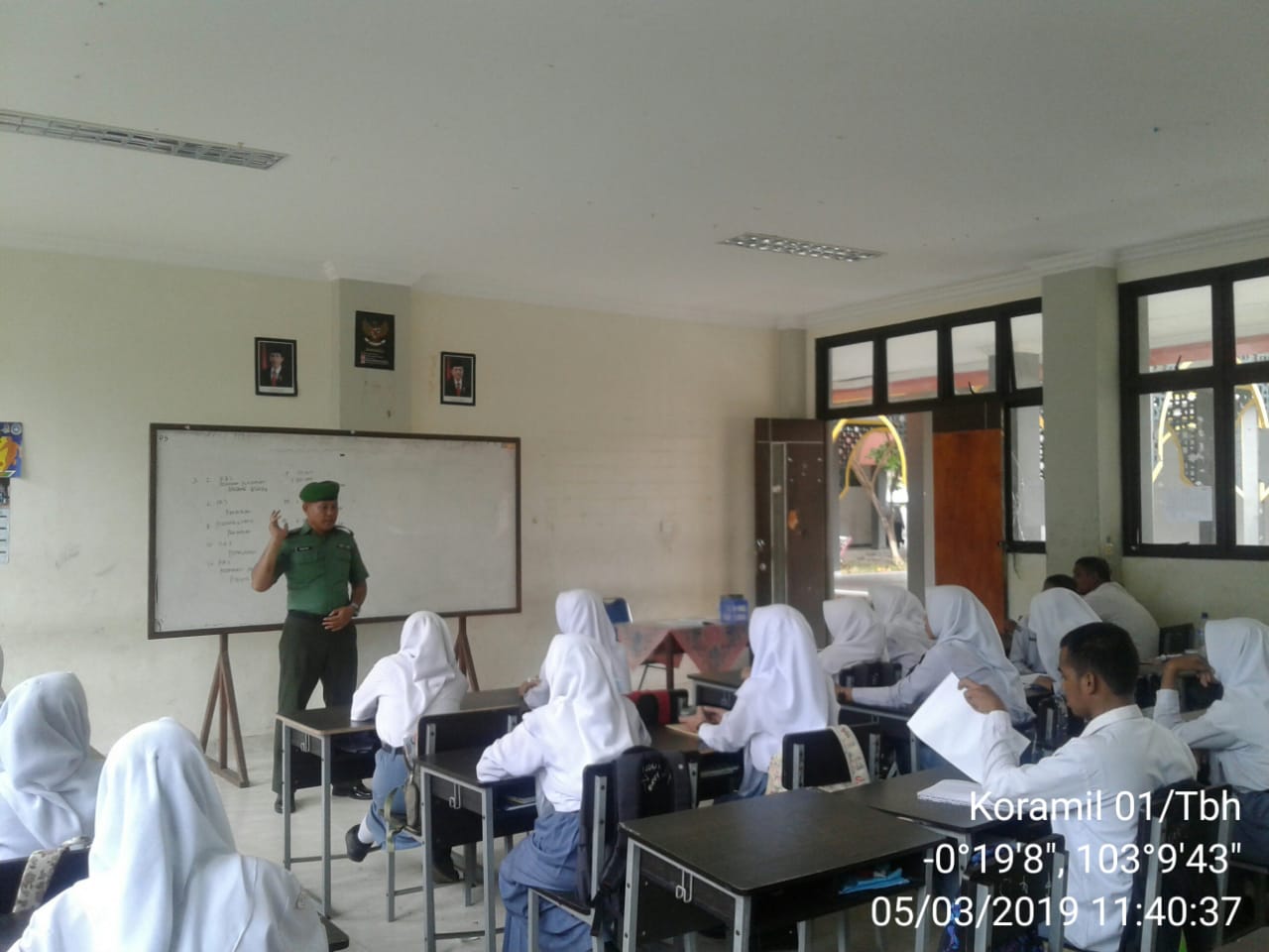 Tembilahan: Selasa (05/03/2019) Babinsa Tembilahan Barat Barat Serma Agusyadi memberikan wawasan kebangsaan kepada siswa/siswi SMAN 1 di Jalan Pendidikan Tembilahan Kota Kecamatan Tembilahan.