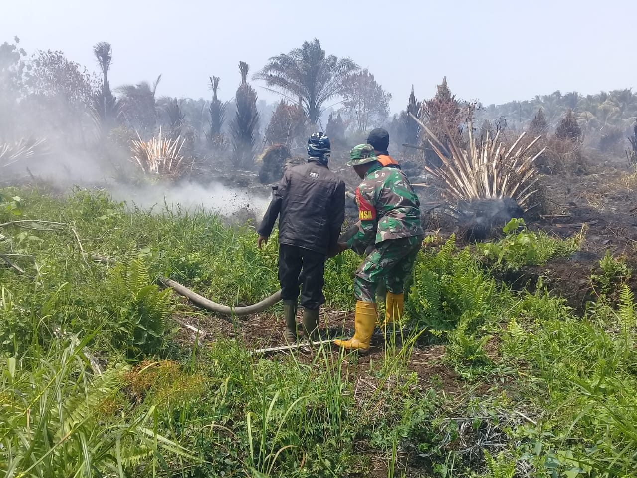 PULAU BURUNG - Kebakaran lahan di Parit Bengkok Desa, Pulau Burung, Kecamatan Pulau Burung telah terjadi, sabtu (09/02/2019) untung keadaan ini segera disikapi anggota Koramil 09/Pulau Burung Kodim 0314/Inhil bersama masyarakat setempat dan pihak terkait. Mereka bekerja ekstra memadamkan api di lahan ladang milik pak. Yusuf itu.