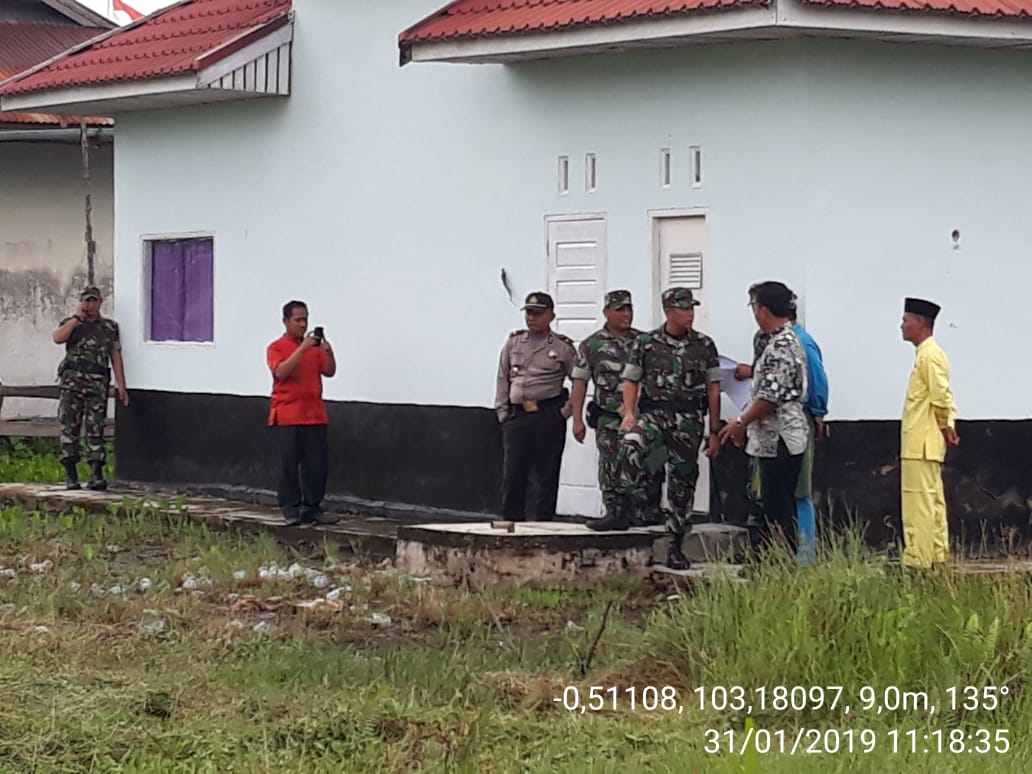 ENOK - Dandim O314/Inhil Letkol Inf Andrian Siregar bersama , Pasi Intel, Pasi Ops, Pasi log, melakukan kunjungan kerja ke Kecamatan Enok dengan tujuan untuk meninjau lokasi pembangunan Koramil yang merupakan wilayah Koramil 02/Tanah merah Kodim 0314/Inhil, Kamis (31/01/2019).