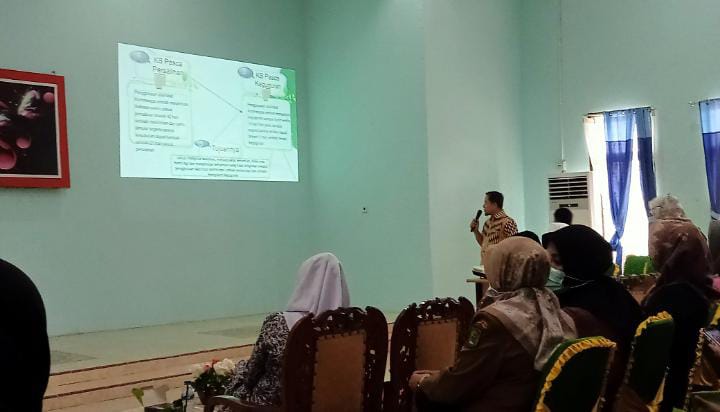 Kegiatan dilanjutkan dengan penyampaian materi tentang kebijakan pelayanan KBRS oleh perwakilan BKKBN Provinsi Riau, Dinas Kesehatan Inhil dan Ikatan Bidan Indonesia (IBI) Inhil.