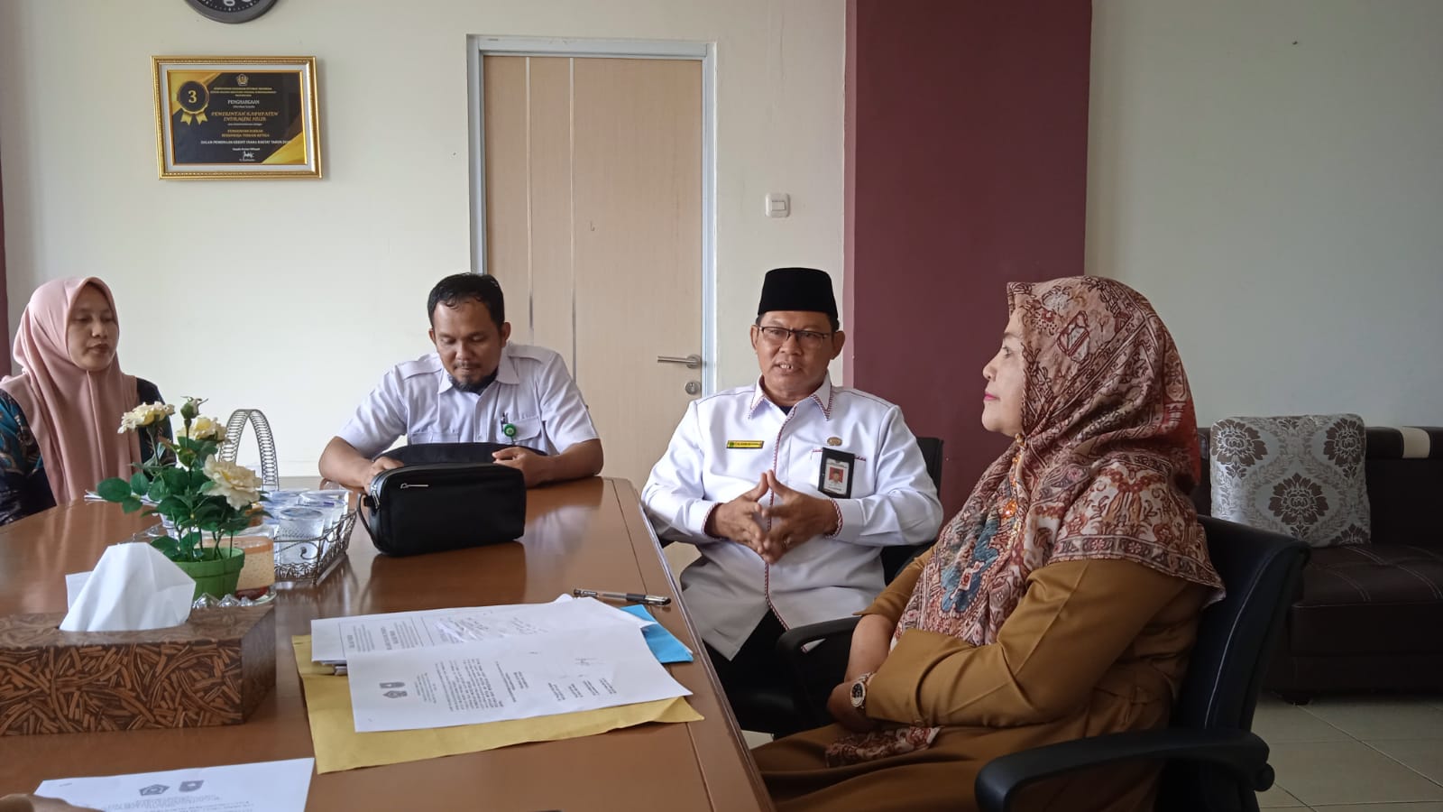 Dinas Koperasi Usaha Kecil Menengah (Diskopukm) Kabupaten Indragiri Hilir (Inhil) menerima Kunjungan  perwakilan Badan Penyelenggara Jaminan Produk Halal (BPJPH) kantor wilayah Kementrian Agama (Kemenag) Provinsi Riau