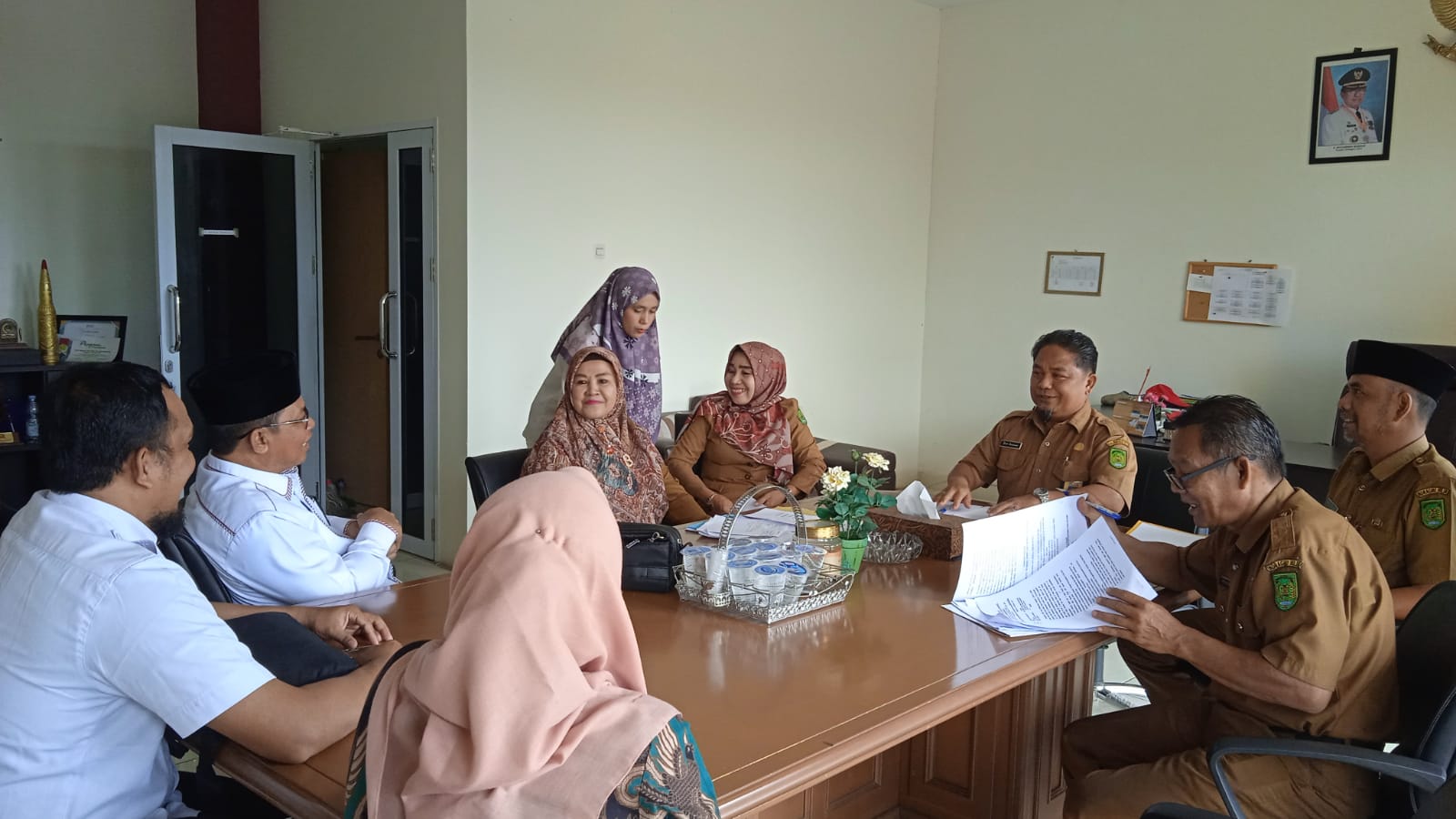 Drs. H. Asmuni Hasan beserta rombongan, dalam rangka menindak lanjuti hasil penandatangan komitmen bersama para kepala daerah se-Provinsi Riau untuk memfasilitasi sertifikasi halal bagi pelaku usaha mikro dan kecil tahun  2022.