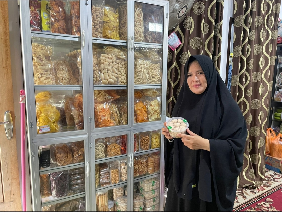 " Banyak ragam jenis kue yang tersedia disini bukan hanya kue semprong tapi ada juga kue bawang, Amplang, keripik pisang, kue bawang, dan kue bangkit, untuk pemasaran sendiri market kita telah sampai ke luar daerah seperti Guntung, Pekanbaru, Siak, Dumai," ujarnya.