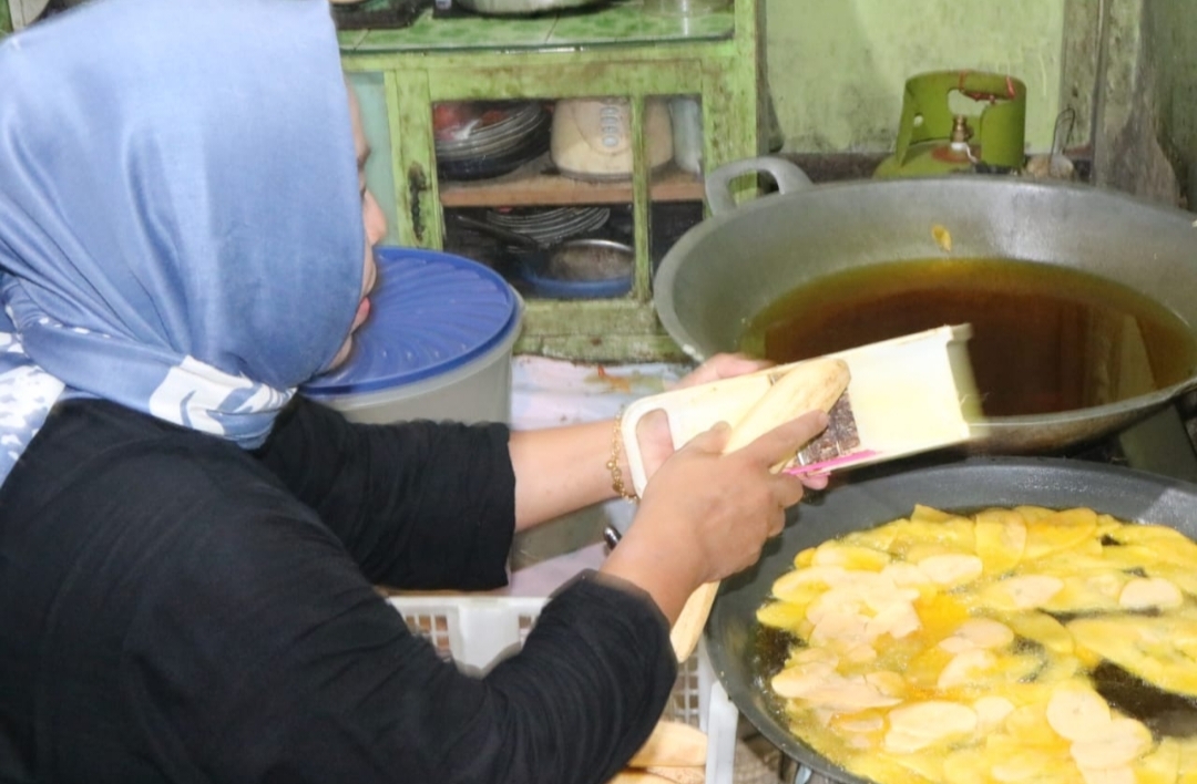 SERIBUPARITNEWS.COM,Tembilahan, - Dinas Koperasi Usaha Kecil dan Menengah (Diskopukm) Kabupaten Indragiri Hilir (Inhil) kunjungi ke Produksi olahan Rumahan "Keripik Pisang Willia"