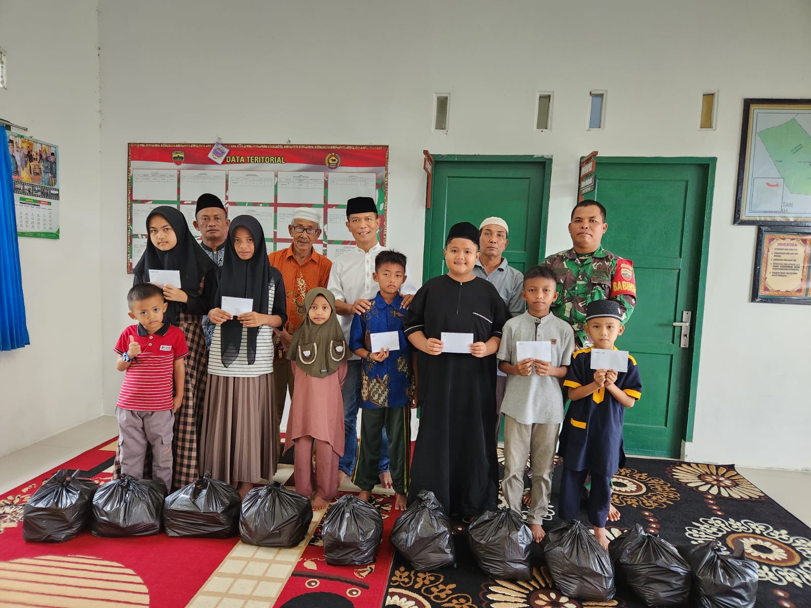 Koramil 10/Pelangiran telah dilaksanakan acara penyantunan kepada anak yatim Kelurahan Pelangiran Rabu (19/04)