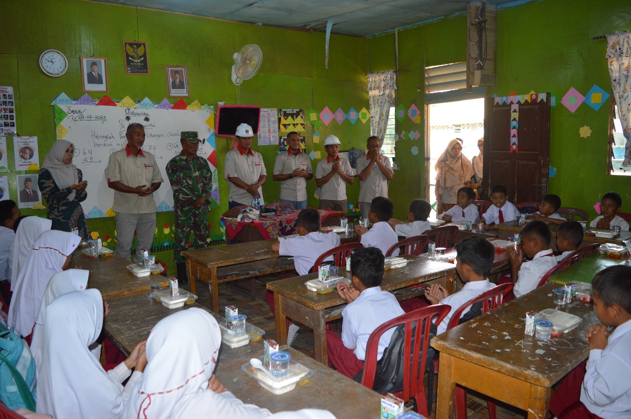Pelangiran – PT. TH Indo Plantations (THIP) bekerja sama dengan Kodim 0314/Inhil meluncurkan program *Makan Bergizi Gratis* di Sekolah Dasar (SD) Swasta 027 Desa Tanjung Simpang. Kegiatan ini bertujuan mendukung pemenuhan gizi berkualitas bagi generasi muda, dengan tema “Wujudkan Generasi Sehat dengan Pemenuhan Gizi Berkualitas”. Peluncuran program ini dihadiri oleh Pjs. Danramil 10/Pelangiran Serka Sugianto, perwakilan Kodim, serta staf dan operasional PT. THIP.