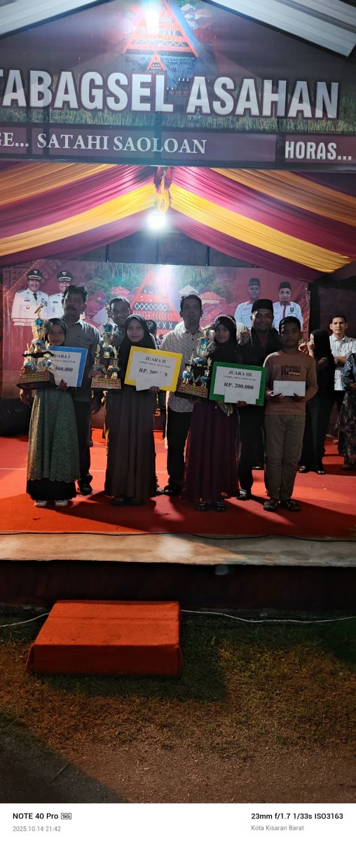 Didampingi ketua Bidang Perlombaan Umar Halim Siregar, Siska br Harahap didampingi Sandy Syahputra Lubis dan Riza Fahlani Lubis selaku Dewan Juri mengumumkan pemenang lomba :
