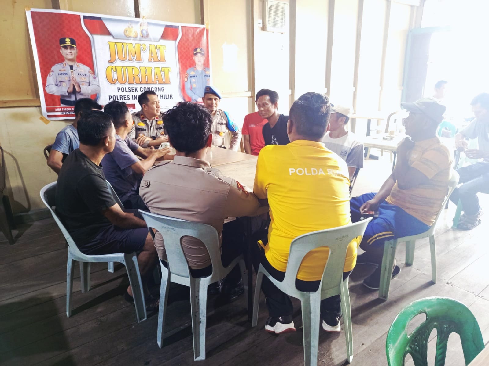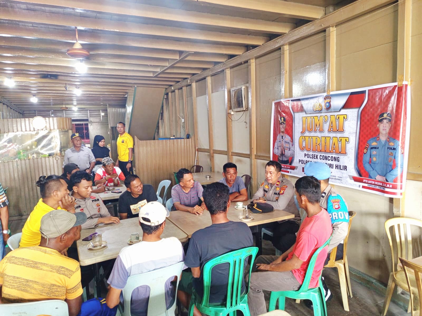 Concong,  – Dalam rangka mempererat komunikasi dan kemitraan antara Polri dengan masyarakat, Polsek Concong melaksanakan kegiatan Jum’at Curhat yang dipimpin langsung oleh Kapolsek Concong IPTU Anton Hilman, S.H., M.H. bertempat di Warung Kopi Punghaw milik Sdr. Engciu, Jl. Datuk Laksamana, Kelurahan Concong Luar, Kecamatan Concong jumat (24/10)