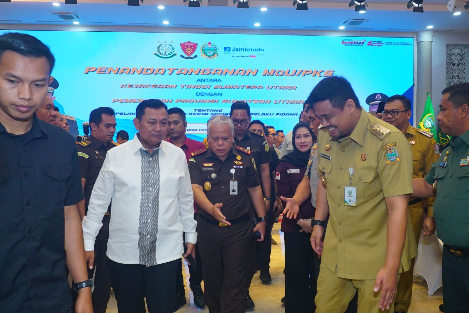 Kegiatan yang berlangsung di aula Raja Inal Siregar kantor Gubernur Provinsi Sumatera Utara Jalan Pangeran Diponegoro Medan, Selasa (18/11/2025) dihadiri Gubernur Sumut Bobby Nasution, Kajati Sumut  Dr.Harli Siregar, SH.,M.Hum, Ketua DPRD Sumut Wakil Gubernur Sumut, Sekretaris Daerah Sumut, Wakapolda Sumut, Kasdam 1/BB, Danlanud Soewondo, Kabinda Sumut, Komando Daerah Angkatan Laut (Kodaeral), Para Asisten, Para Kajari, Kabag TU dan Koordinator, para Bupati/Walikota se Provinsi Sumatera Utara, pimpinan dan Jajaran Jamkrindo se-Sumatera Utara serta para Kepala OPD Provinsi Sumatera Utara.