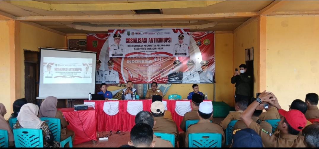 PELANGIRAN - Pemerintah Kecamatan Pelangiran menggelar sosialisasi anti korupsi sebagai bagian dari peringatan Hari Anti Korupsi Sedunia (Hakordia) tahun 2025. Acara ini diadakan pada hari Selasa (18/11) di aula kantor kecamatan dan dihadiri oleh seluruh anggota Forum Koordinasi Pimpinan Kecamatan (Forkopincam), kepala desa se-Kecamatan Pelangiran, serta tokoh masyarakat.