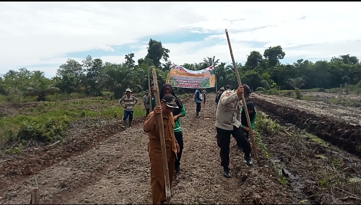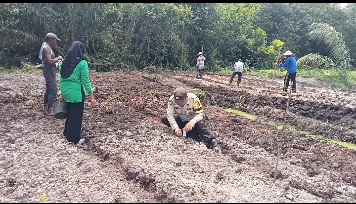 Polsek Pulau Burung Bersama Pemerintah Desa Keramat Jaya dan masyarakat melaksanakan kegiatan Penanaman Jagung Serentak