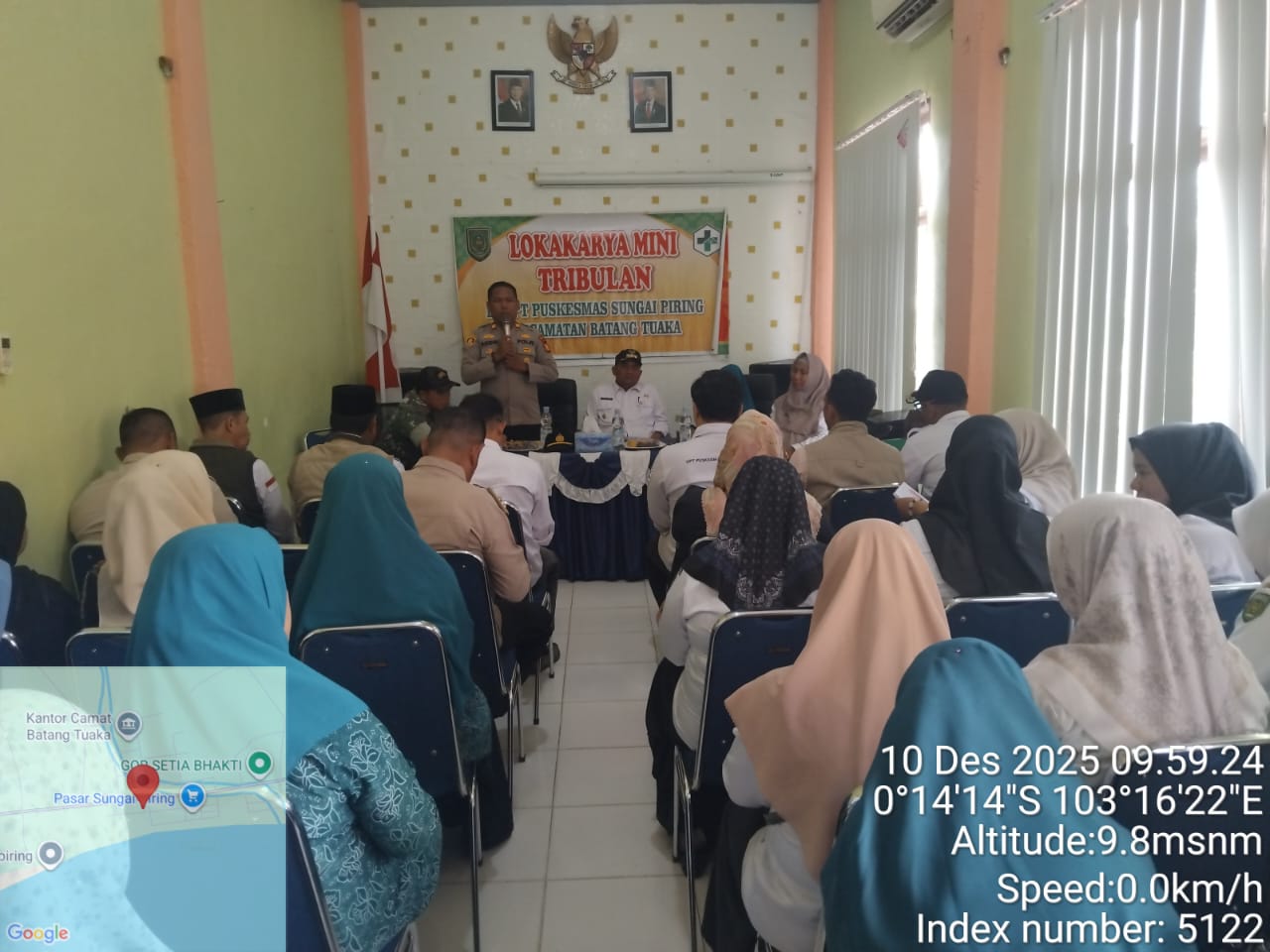 Batang Tuaka – UPT Puskesmas Sungai Piring menggelar Lokakarya Mini Triwulan pada Rabu, 10 Desember 2025, pukul 09.30 WIB. Kegiatan evaluasi tersebut melibatkan lintas sektor dan pemangku kepentingan kesehatan di Kecamatan Batang Tuaka, Kabupaten Indragiri Hilir. Acara diawali dengan pembukaan, menyanyikan lagu Indonesia Raya, dan doa bersama.