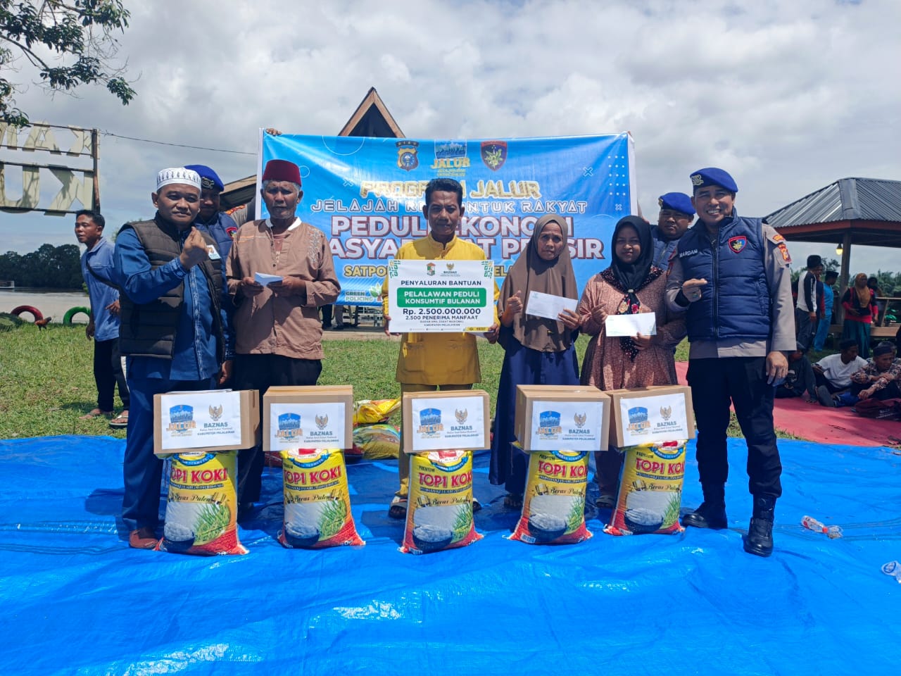 Pelalawan - Satuan Polisi Perairan dan Udara Polres Pelalawan bersama Badan Amil Zakat Nasional Kabupaten Pelalawan kembali menunjukkan kepedulian terhadap masyarakat pesisir perairan melalui pelaksanaan Program Unggulan Kapolda Riau, JALUR (Jelajah Riau Untuk Rakyat). Kegiatan sosial ini dilaksanakan di Desa Kuala Terusan, Kecamatan Pangkalan Kerinci, Kabupaten Pelalawan, sebagai wujud nyata kehadiran Polri di tengah masyarakat.