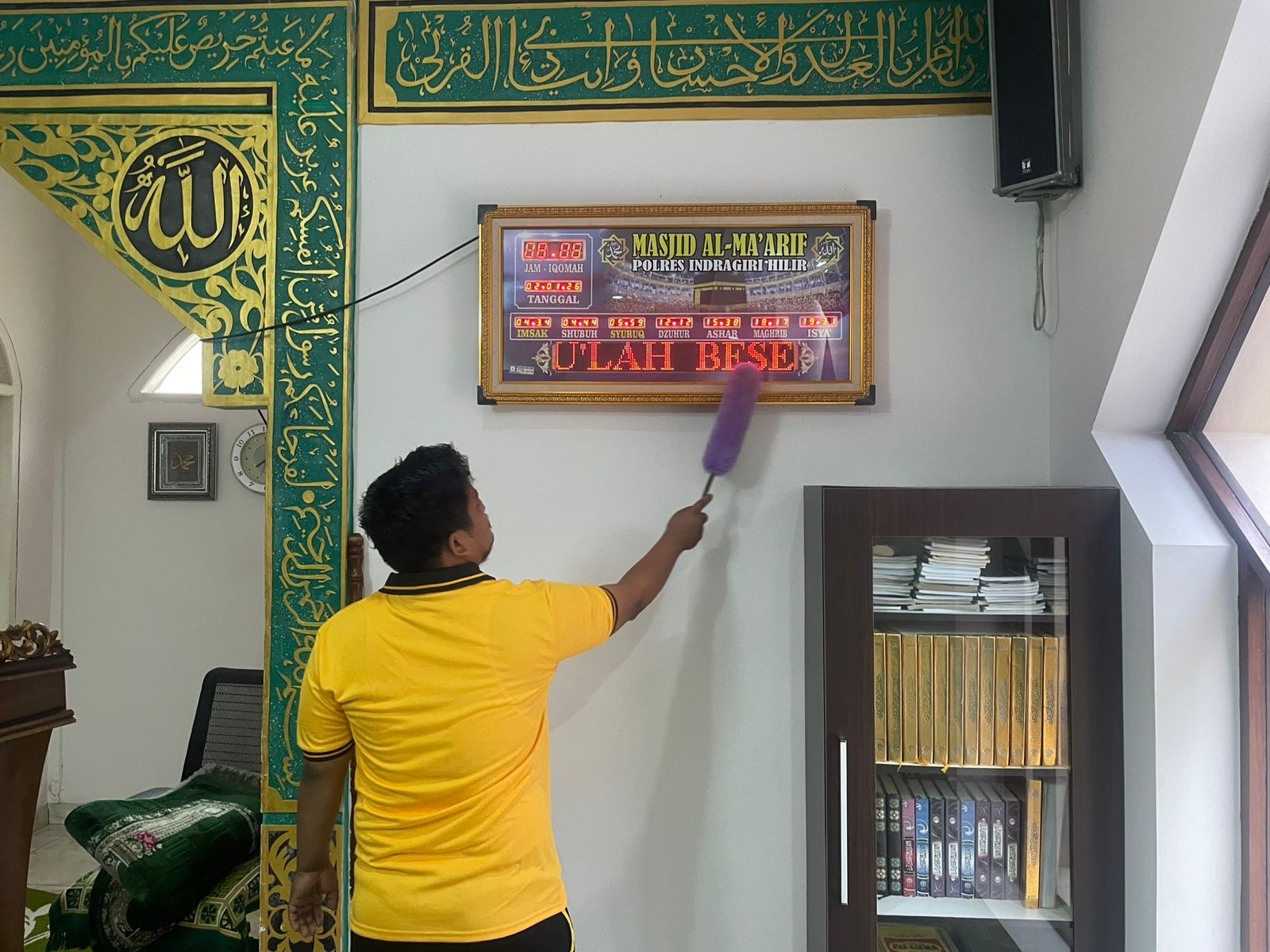 Bakti Religi Warnai Hari Jadi Intelijen Polri ke-80, Satintelkam Polres Inhil Bersihkan Masjid Al-Ma’arif