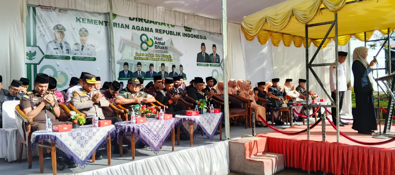 Upacara peringatan HAB Kemenag RI ke-80 tersebut mengusung tema “Umat Rukun dan Sinergi, Indonesia Damai dan Maju”, yang mencerminkan semangat kebersamaan dan persatuan dalam keberagaman. Babinsa Sertu Anton hadir sebagai bentuk dukungan TNI AD terhadap kegiatan keagamaan dan kebangsaan yang dilaksanakan oleh instansi pemerintah.