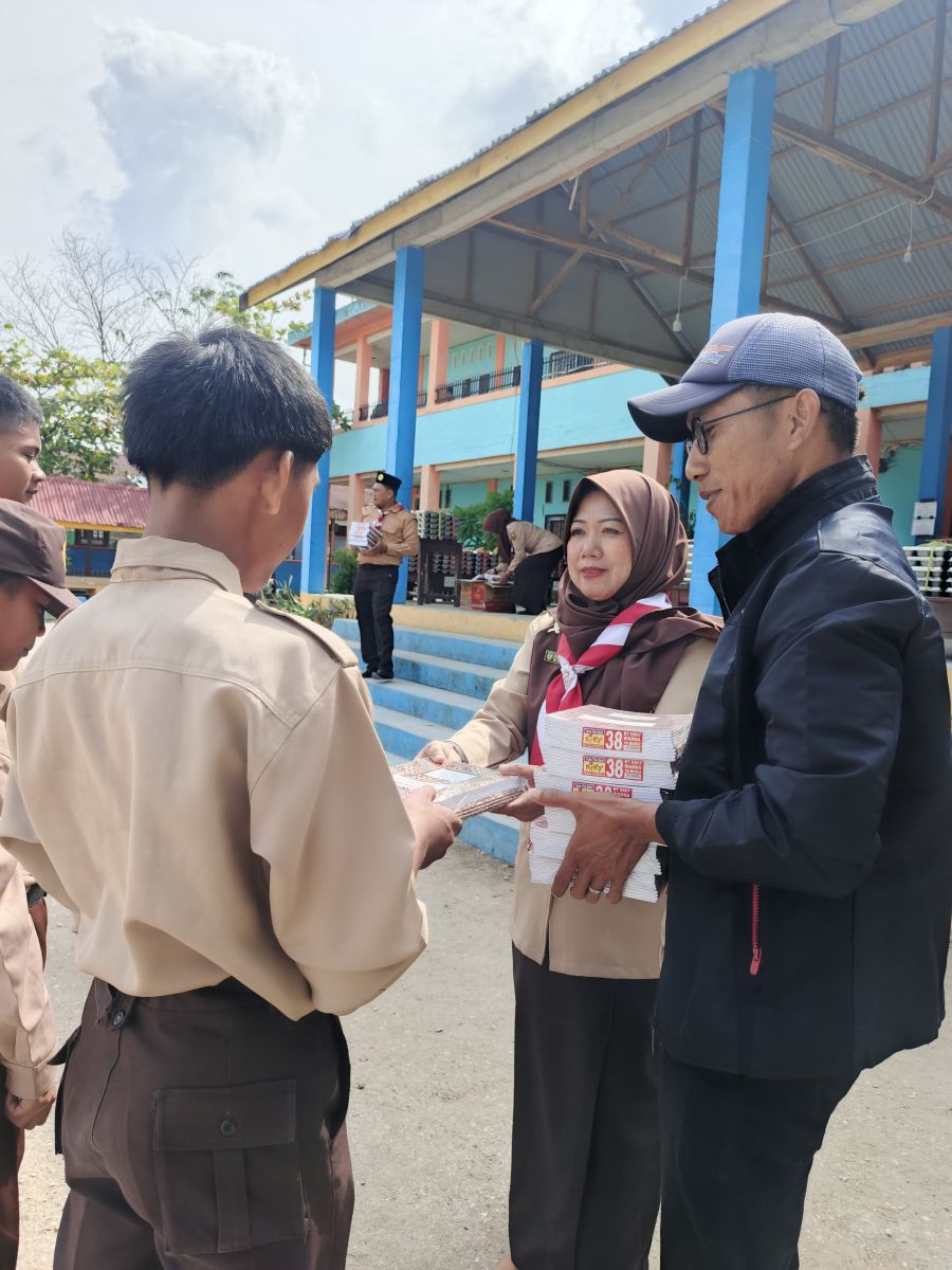 CV Honda Mas Tembilahan menyalurkan bantuan berupa buku tulis untuk siswa SMP Negeri 1 Tembilahan pada Rabu, 14 Januari 2026.