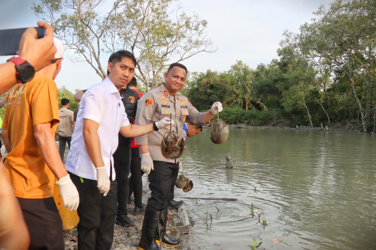 Dalam rangkaian kegiatan, Kapolres Batu Bara bersama unsur Forkopimda dan BKSDA secara simbolis melepas 300 ekor hewan Belangkas ke habitat alaminya di perairan Pantai Sejarah. Pelepasan ini menjadi simbol komitmen negara dalam mengembalikan keseimbangan ekosistem laut sekaligus menyelamatkan satwa yang terancam punah akibat praktik perdagangan ilegal.