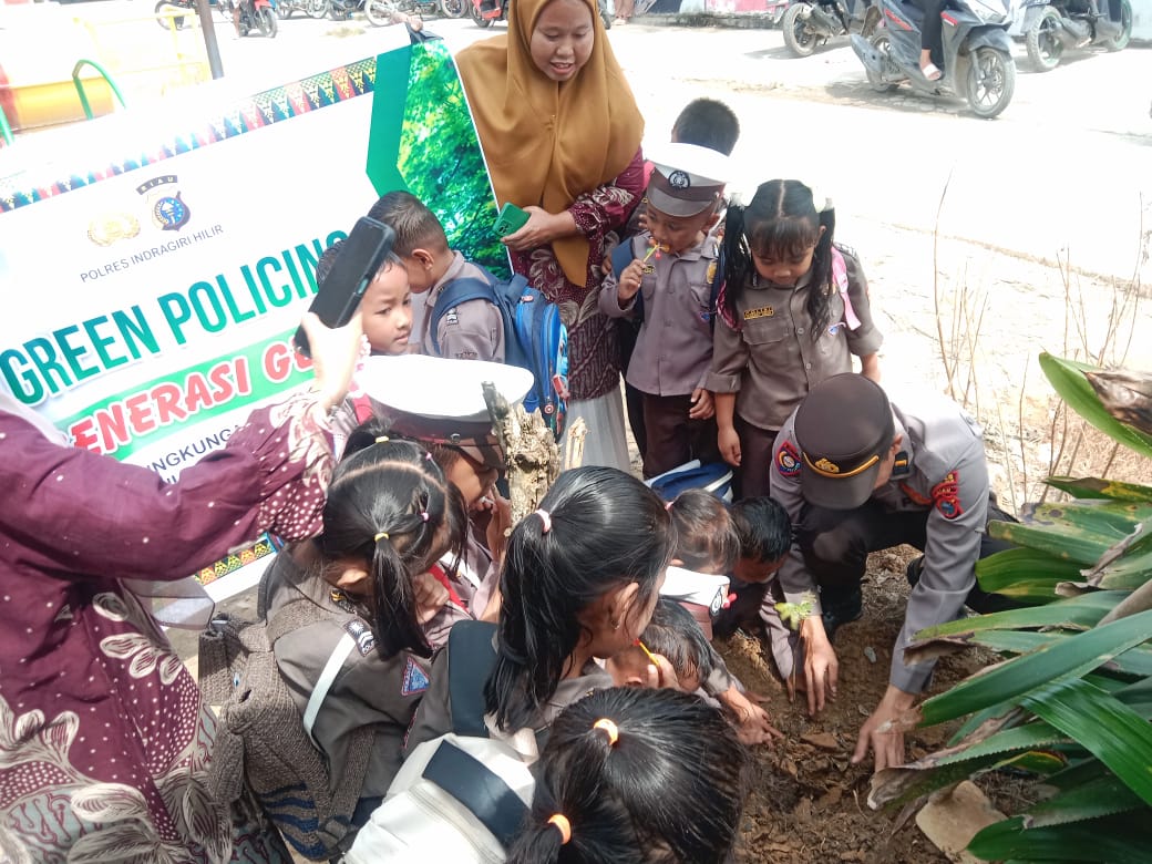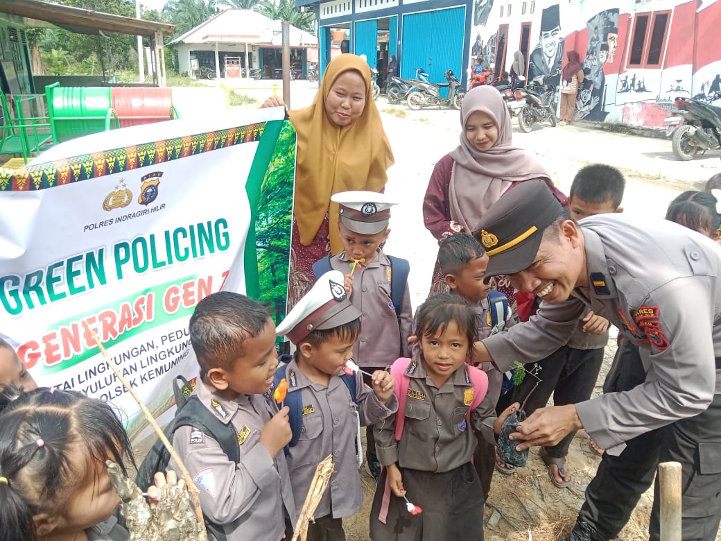 Kemuning - Sat Binmas Polsek Kemuning Polres Indragiri Hilir melaksanakan kegiatan penyuluhan dan edukasi peduli lingkungan hidup kepada masyarakat serta anak usia dini di PAUD Al-Wardah, Desa Kemuning Muda, Kecamatan Kemuning, Kabupaten Indragiri Hilir, sebagai bagian dari implementasi Program Kapolda Riau tentang Green Policing Senin (26/01)