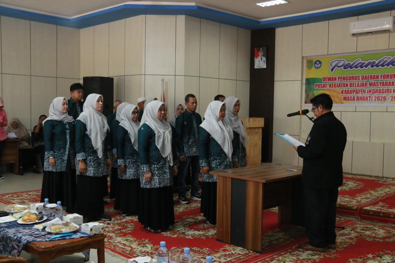Tembilahan, - Pemerintah Kabupaten Indragiri Hilir menunjukkan komitmennya terhadap penguatan pendidikan nonformal dengan menghadiri pelantikan Dewan Pengurus Daerah Forum Komunikasi Pusat Kegiatan Belajar Masyarakat (DPD FK-PKBM) Kabupaten Indragiri Hilir masa bhakti 2026–2031. Kegiatan tersebut berlangsung di Aula Dinas Pendidikan Kabupaten Indragiri Hilir, Sabtu 7 Februari 2026.